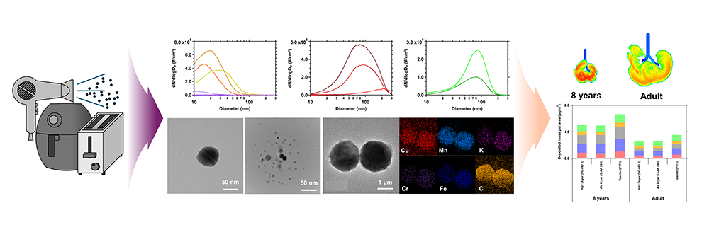 해당 연구는 일상생활에서 흔히 사용하는 소형 전열가전제품에서 발생하는 직경 100nm 이하 초미세먼지 입자(UltraFine Particles, UFPs)의 물리화학적 특성을 분석하고, 폐침적 시뮬레이션 결과 기반 나이에 따른 UFP의 건강영향을 다뤘다.